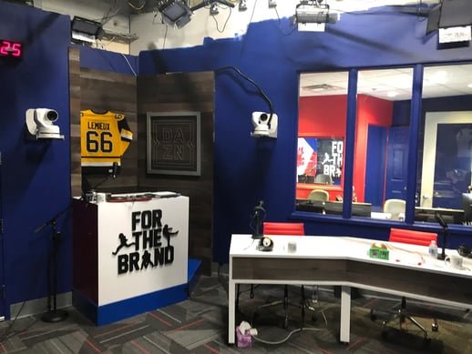 Mynch explained that five AW-UE150s are permanently installed in the Indianapolis studio, with the remaining PTZs placed in McAfee’s mobile studio. At least one show per week is produced on the road, keeping up with McAfee’s travel schedule. DAZN likewise invested in two companion AW-RP150 PTZ control surfaces (one each in the Indianapolis and mobile studios), and three Panasonic BT-LH1770 17” Panasonic monitors (two installed in Indianapolis, one in the mobile van).